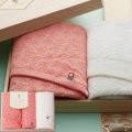 晴れの日を彩る、紅白の贈りもの。今治の匠が織り成す、成長を願う麻の葉模様の、木箱入り今治タオルです。