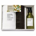 オレンジ&ハーブのこだわりフレーバーがふわっと香るハンドソープとオーガニックコットンタオルのおしゃれでやさしいギフトです。