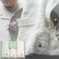 やわらかな糸が奏でる、可憐なカスミソウのように上品でどこか愛らしい今治タオル。ありがとうの気持ちを伝える花束に欠かせないカスミソウには「感謝」という花言葉が付けられました。心からの感謝の気持ちを今治かのんに込めて届けます。