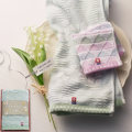 ころんとした形がかわいらしい「すずらん」と、色とりどりの「さんかく模様」の今治タオルです。