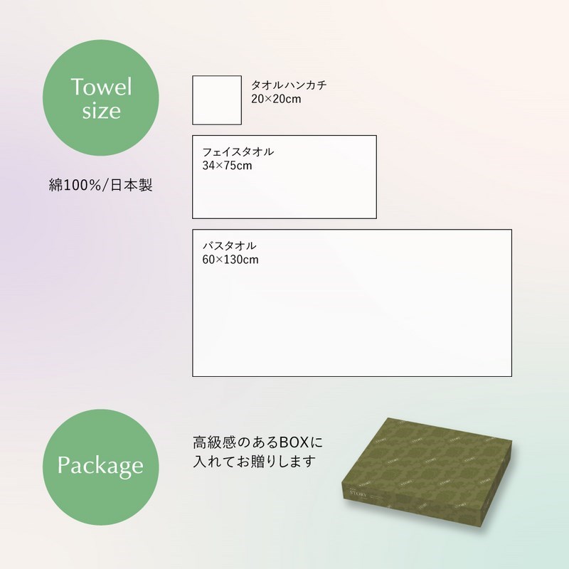 【内容】フェイスタオル(34×75cm)・タオルハンカチ(20×20cm)