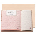 今治の匠が織り成すタオルのやわらかく淡い色と伝統柄から上品さが漂います。パイルのやさしい肌触りをふわりと感じる今治タオルです。高級感ある木箱入りで、贈り物に最適です。