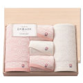 今治の匠が織り成すタオルのやわらかく淡い色と伝統柄から上品さが漂います。パイルのやさしい肌触りをふわりと感じる今治タオルです。高級感ある木箱入りで、贈り物に最適です。