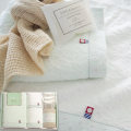 上品に輝くシルバーのラメをあしらった爽やかなグリーンとホワイトの今治タオルにふんわり花咲くカスミソウの花言葉は清らかな心・幸福・永遠の愛、そして「感謝」。白くやさしい花を咲かせるカスミソウに心からのありがとうを込めて贈ります。