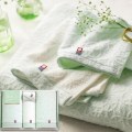 タオルにふんわり花咲くカスミソウの花言葉は清らかな心・幸福・永遠の愛・そして「感謝」。可憐なカスミソウに心からの感謝をこめて。タオルのヘムに輝くシルバーのラメが、さりげない上品さを演出してくれます。