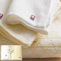 伊予の穏やかな地で百三十年の伝統が織りなす季節を紡ぐ、「かごめ紋様」と「あぜ織布」の日本の伝統的な模様をあしらったやさしい色合いの今治タオルです。
