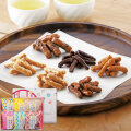 【内容】黒ごまかりんとう・黒糖かりんとう・牛乳かりんとう・ピーナッツかりんとう・チョコかりんとう・キャラメルかりんとう(各45g)×各1