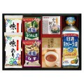 【内容】日清キャノーラ油400g、アマノフーズ減塩いつものおみそ汁なす9.0g、アマノフーズ減塩いつものおみそ汁ほうれん草6.8g、丸美屋洋風スープオニオン風味(2.5g×5)、マルトモかつおパック(0.7g×3)、有明海産味のり(8切5枚)×2