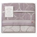 落ち着いた色合いでモダンなデザインのタオルです。タオルの名産地・今治で織り上げたタオルは、使いはじめから吸水性がよく、ふんわりした風合いが長続きします。