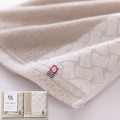 「あたたかな」を意味するフランス語"chaleur"と「世界」を意味する"mond"から名づけられたMonChaleur。やわらかであたたかみのあるやさしい色合いの今治タオルです。縦に2つの色を配し、右側の縄の網目のような模様が特徴です。