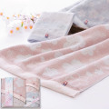 やわらかなタオルの中に舞う桜の柄のタオルです。伝統の技術で織り上げられた今治産のタオルは、使いはじめから吸水性がよく、ふんわりとした風合いが長続きします。