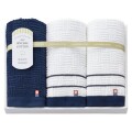 ネイビーとホワイトのコントラストが美しい品格あふれるギフトセット。ノーブルな紺色と白色のコントラストが美しい、高級感のあるタオルです。フォーマルでも映えるシックでモダンなデザインが自慢です。