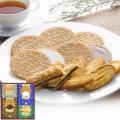 風味豊かなバニラクリームをサンドしたバニラゴーフレットや、上品な味わいに仕上げたチョコゴーフレット、何層にも重ねたパイ生地に細かく砕いたアーモンドを挟み、サックリと焼き上げたアーモンドパイ、チョコをサンドしたやさしい甘さのショコラスティックパイをセットしました。お菓子好きな人にも満足な詰合せです。